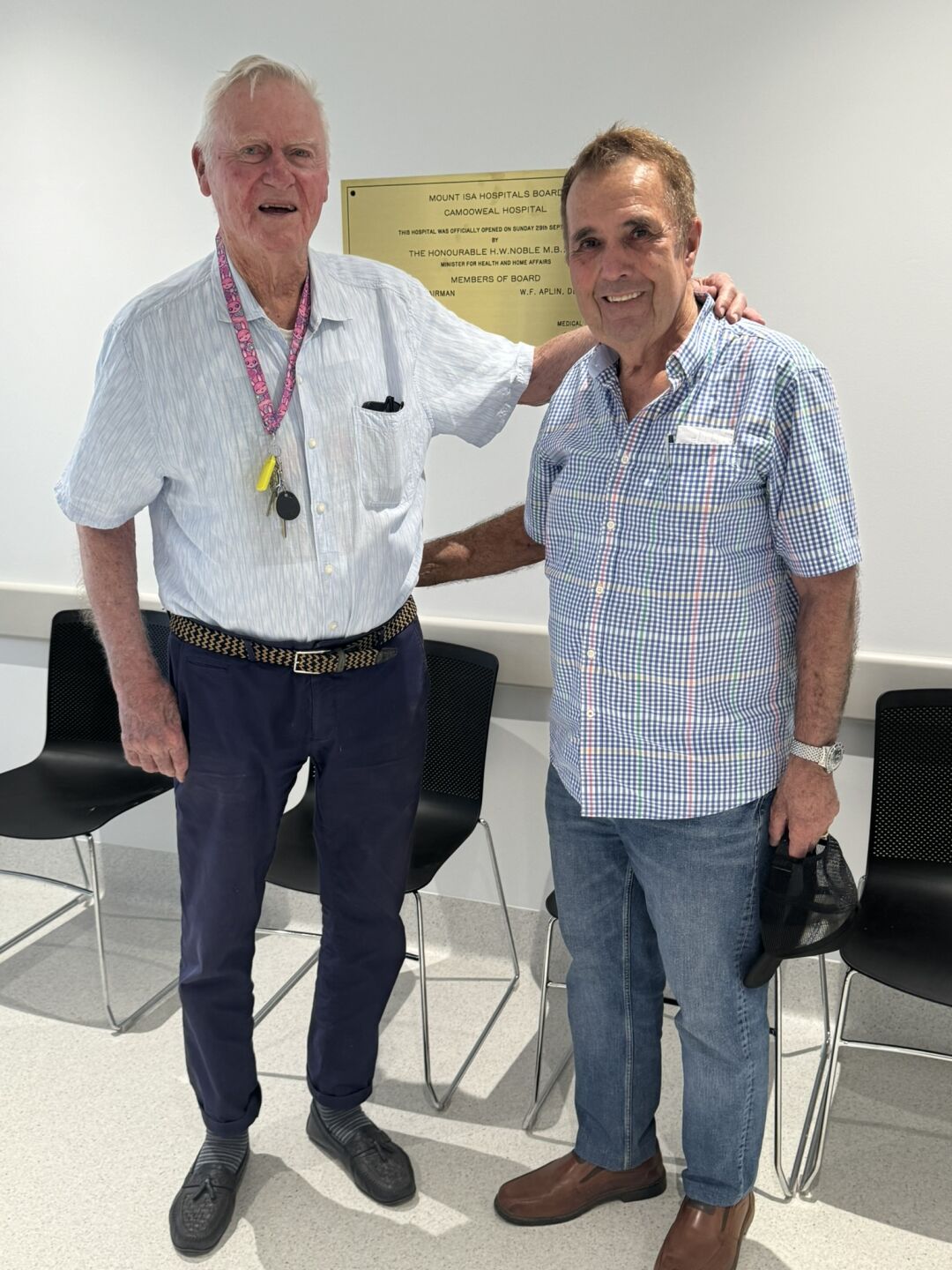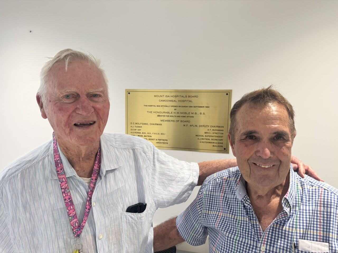 In a heartfelt return to one of Hutchies’ most remote and historic projects, company legends Barry Butterworth and Jack Hutchinson Snr recently visited Camooweal to see the newly completed hospital – built by Hutchies Modular in 2024 – replacing the original facility Barry helped construct back in 1963.