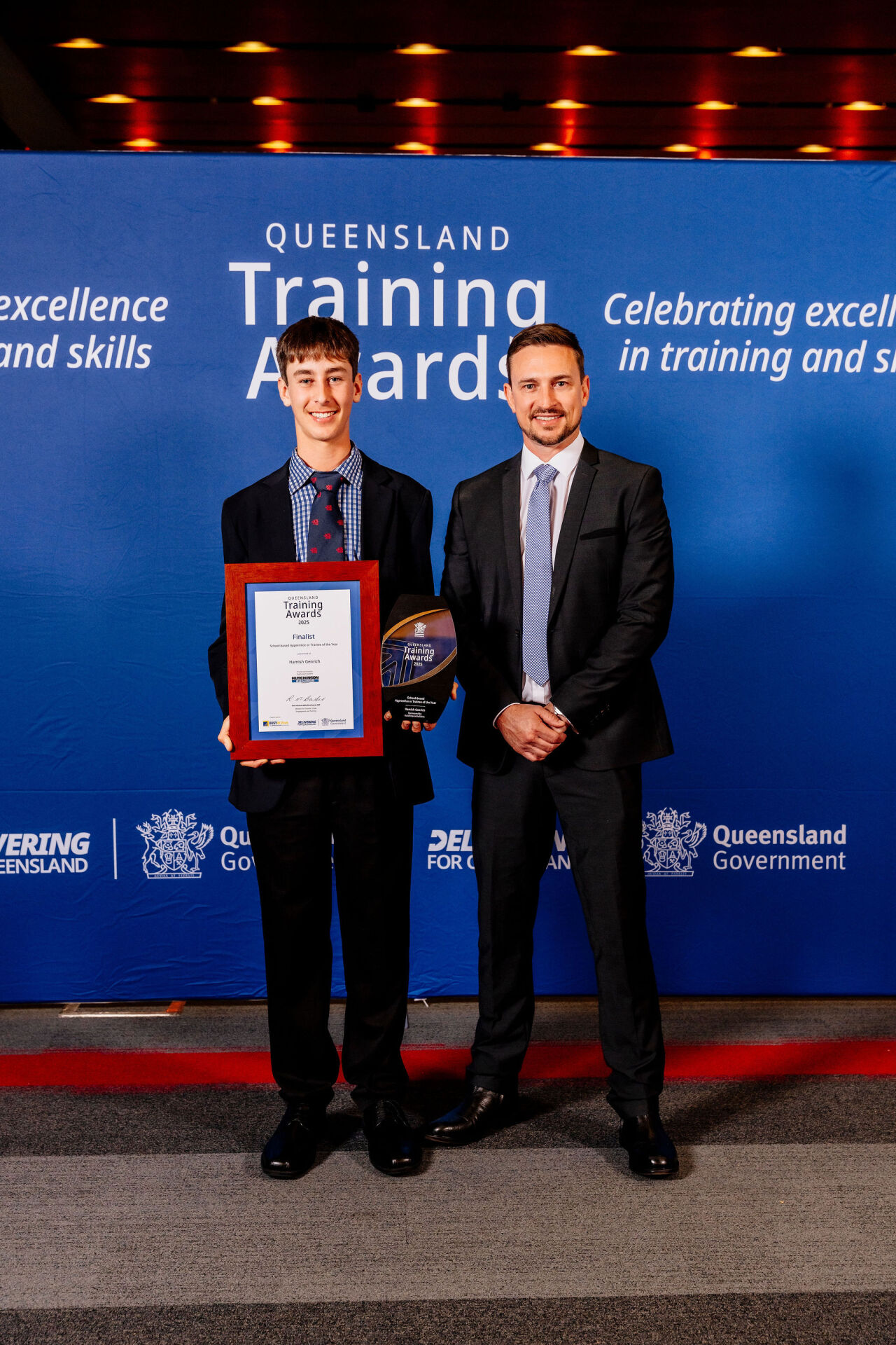 The School-based Apprentice or Trainee of the Year Award recognises a student’s outstanding commitment to both formal studies at school and practical learning in the workplace – celebrating those who are building their skills and shaping Queensland’s future workforce. This year, Hutchies’ own Sean Cummiskey presented the award to Hamish Grenrich.