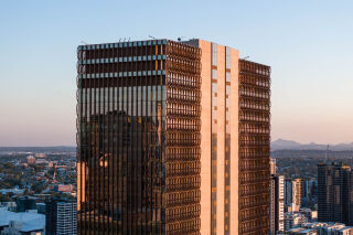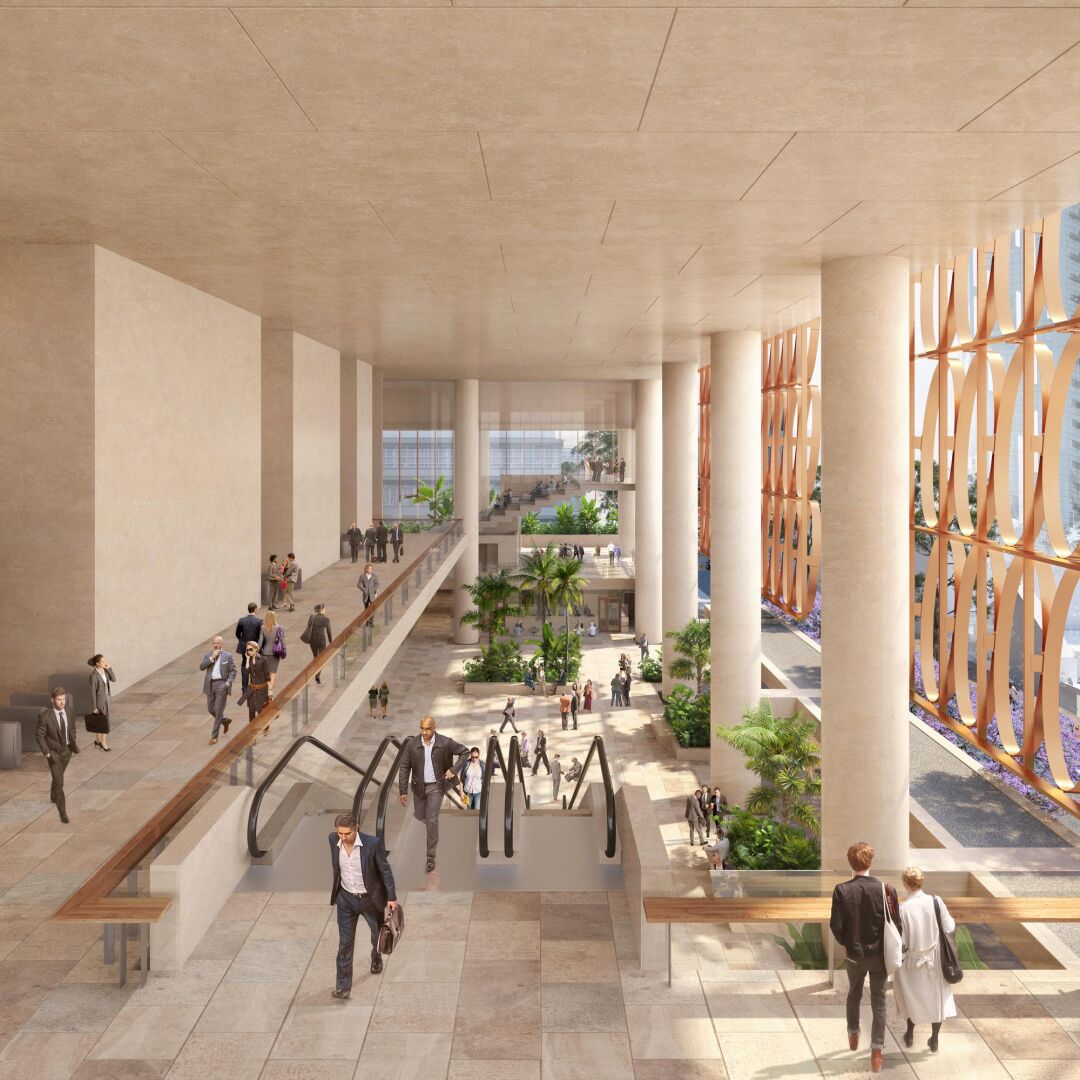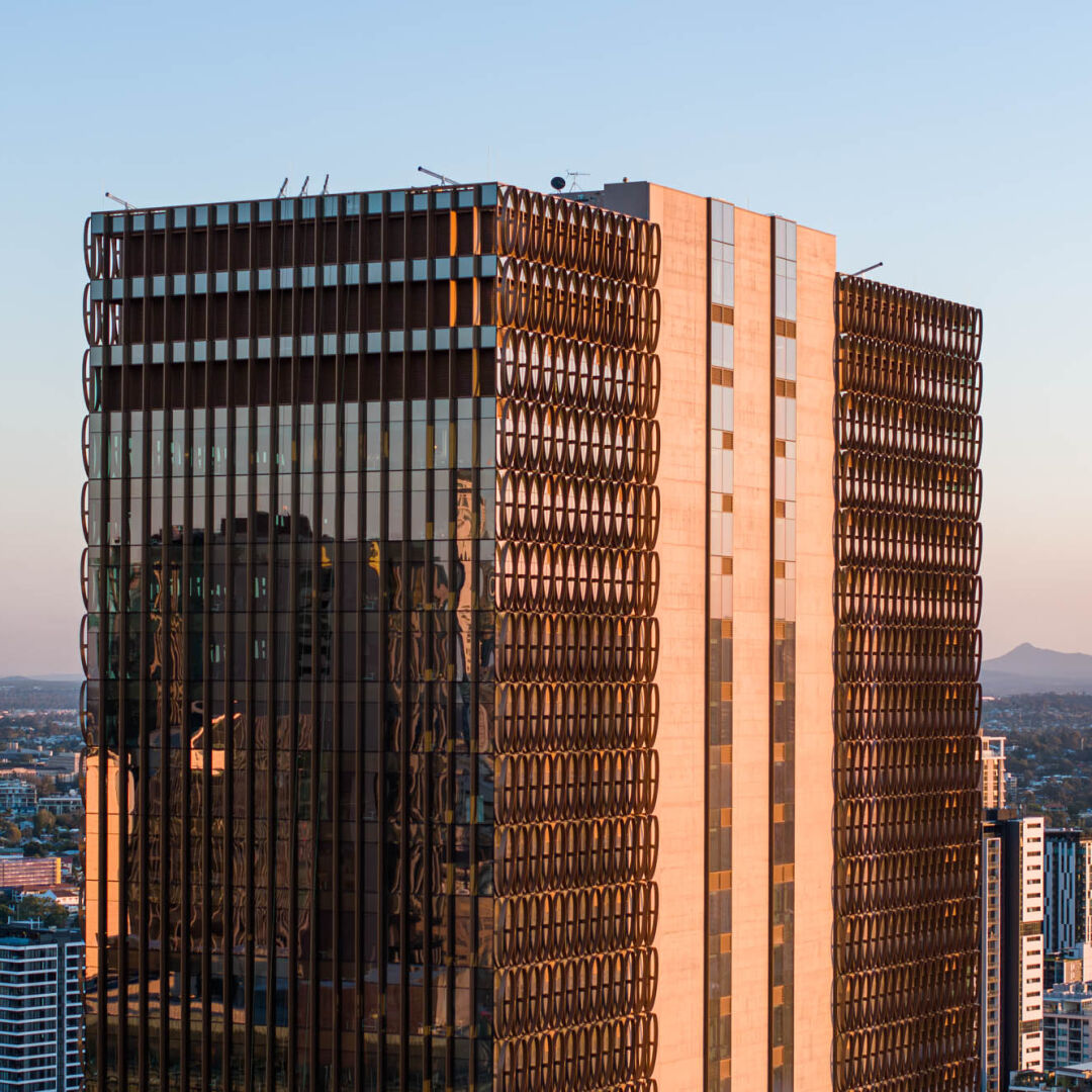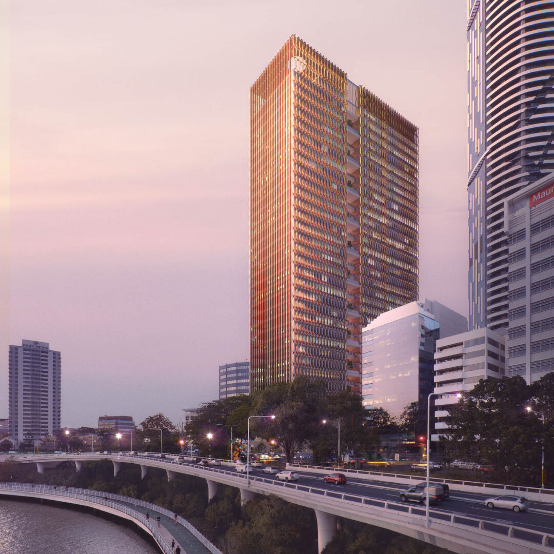 The premium‑grade tower in Brisbane’s Roma Street precinct provides 43,700 square metres of office net lettable area and blends architectural beauty with purpose and performance.