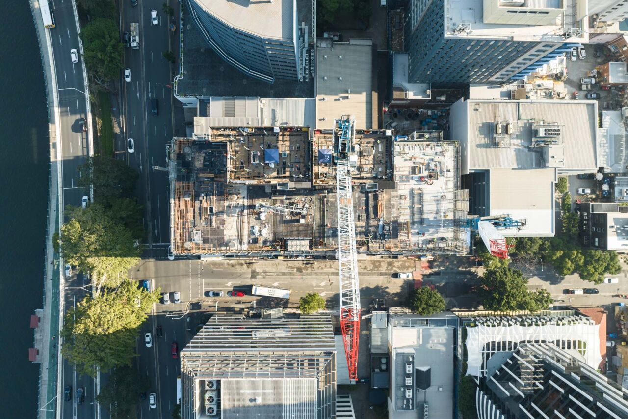 Given the tower’s location at one of Brisbane’s busiest intersections – where Coronation Drive becomes the Riverside Expressway – we worked closely with Brisbane City Council to carefully manage traffic and logistics, ensuring the city kept moving throughout construction. We also integrated an Energex access tunnel beneath the podium, meeting highly complex technical and safety requirements without compromising program or quality.
