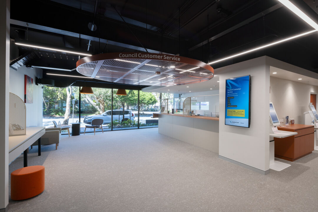 Hutchies partnered with the Sunshine Coast Council to transform the existing three-storey Caloundra Council Chamber – originally built in 1996 – into a vibrant new community hub. The refurbishment repurposed the building to house the modern Caloundra public library on the ground and first floors, with council offices occupying the second level.