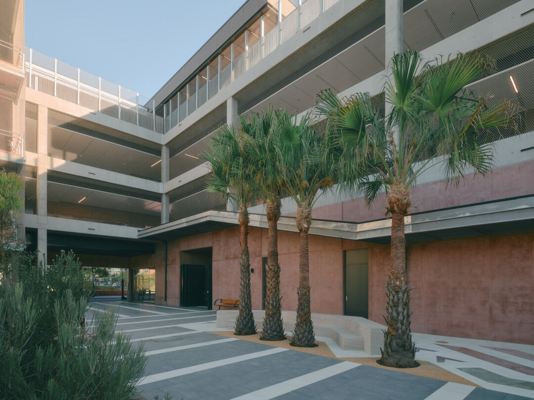 The entire concrete structure comprises over 4,000m² of pigmented Class 2 concrete, poured in-situ, requiring a coordinated approach and expert execution. The result is a façade that blends with the surrounding built environment and interfaces seamlessly.
