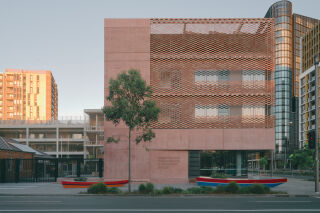 Stitched into parks, plazas and the public life of Green Square, the primary school with integrated community facilities is alive and welcoming, active day and night. A loose-weave screen gives privacy and shade to verandas and outdoor learning areas, while a rooftop engages little learners with active...