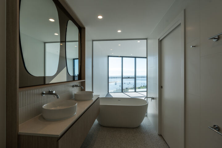 Eve Residences is a remarkable residential project built by Hutchies. Located at 180 Marine Parade, Labrador, this 25 story tower is inspired by the sand patterns found among the swirling tidal flats of the adjacent Broadwater, the tower’s fluid, curvilinear form is a monument to its coastal setting.