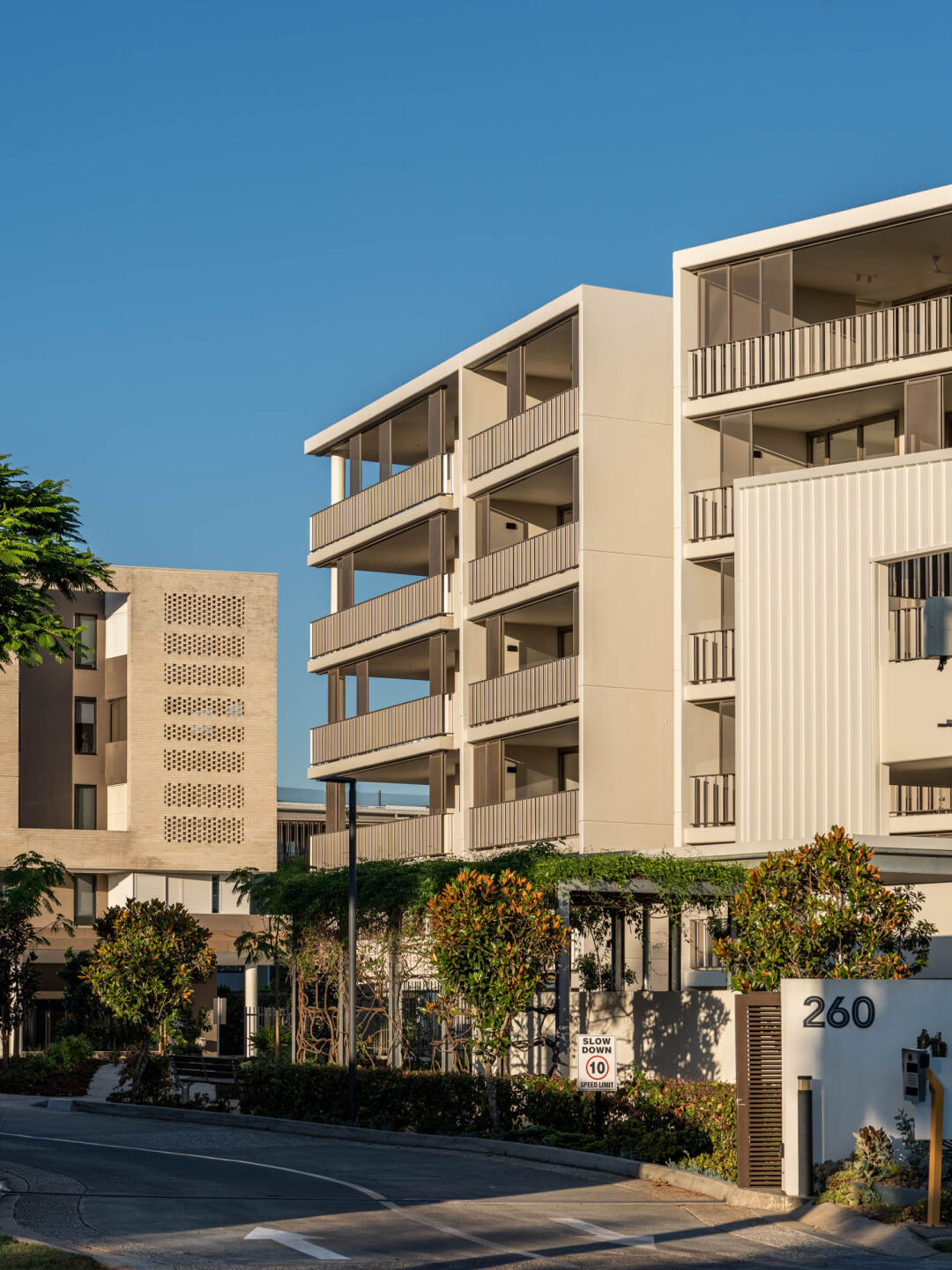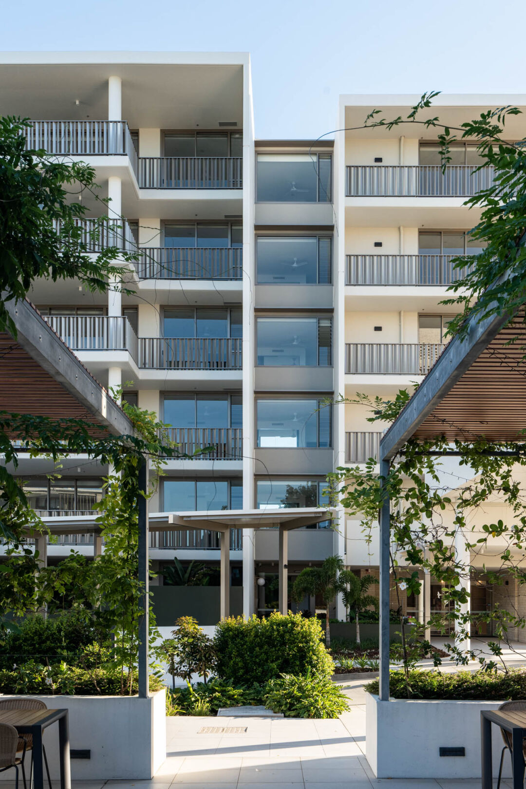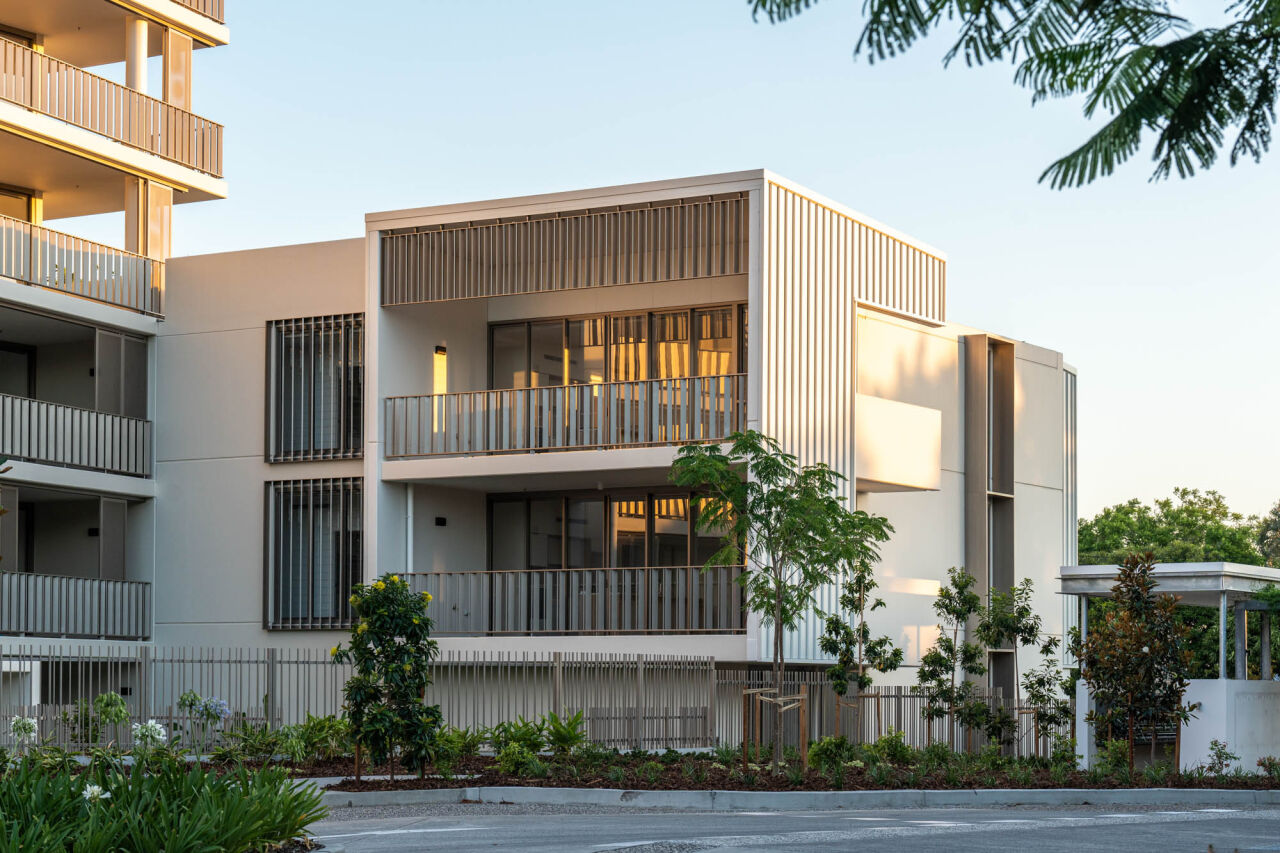 The Kingsford Terrace development in Corinda, Brisbane, is a luxury retirement village designed for active, social living. It’s maintenance-free, offers care services, and is pet-friendly – giving residents peace of mind. The masterplan positions buildings around a central courtyard to create open spaces and maximise natural light.