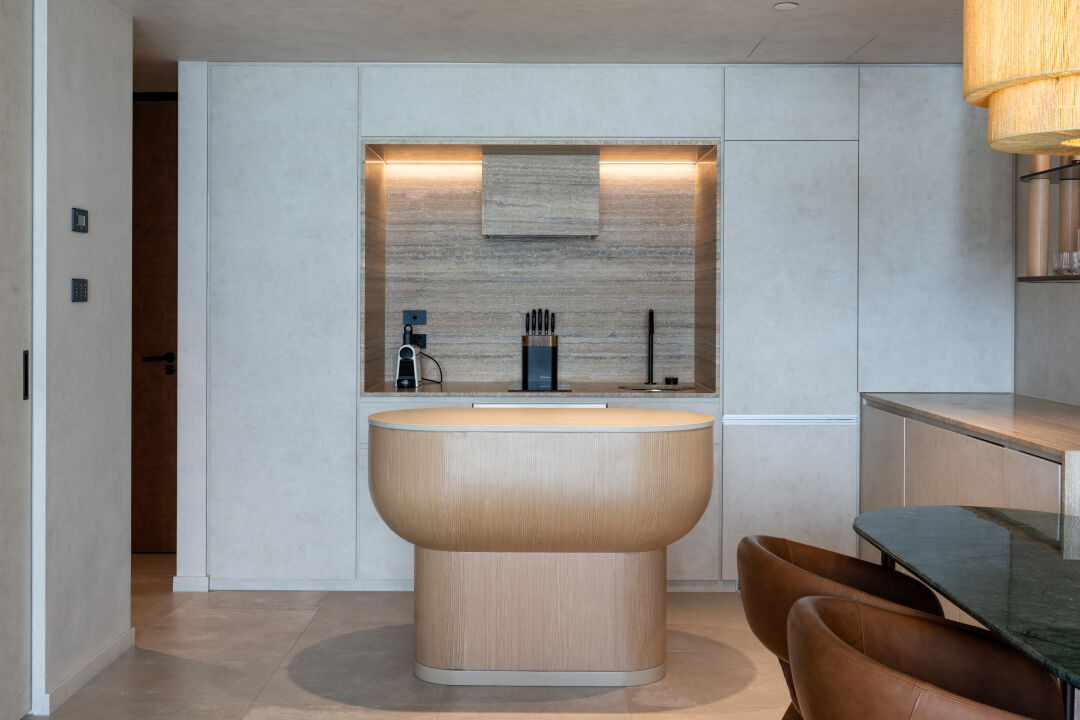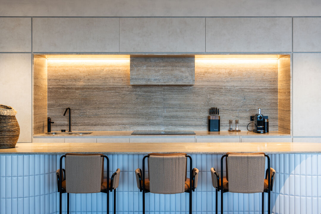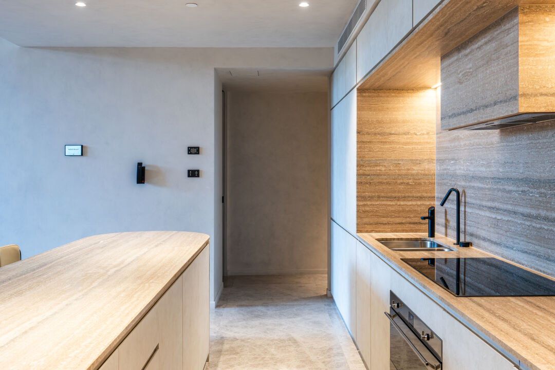 We worked closely with Studio Carter, DBI and Tamsin Johnson Interiors who designed the interiors. Our team delivered calm, contemporary spaces with finishes inspired by the coastline. Inside each home we installed appliances from Gaggenau, Miele and Liebherr, paired with natural stone, timber and wool carpets. Every detail reflects the level of quality expected from an international lifestyle brand.