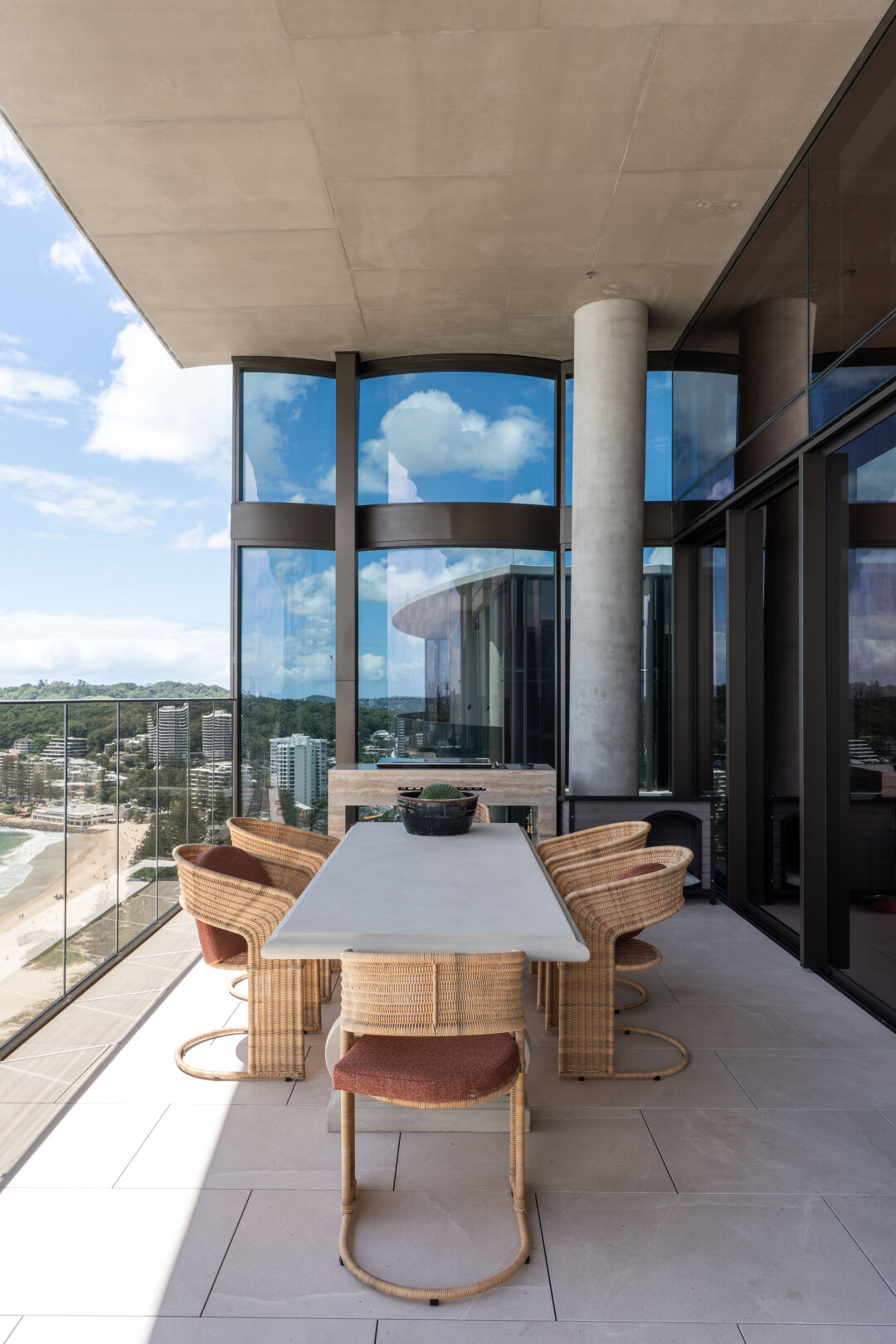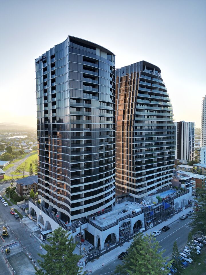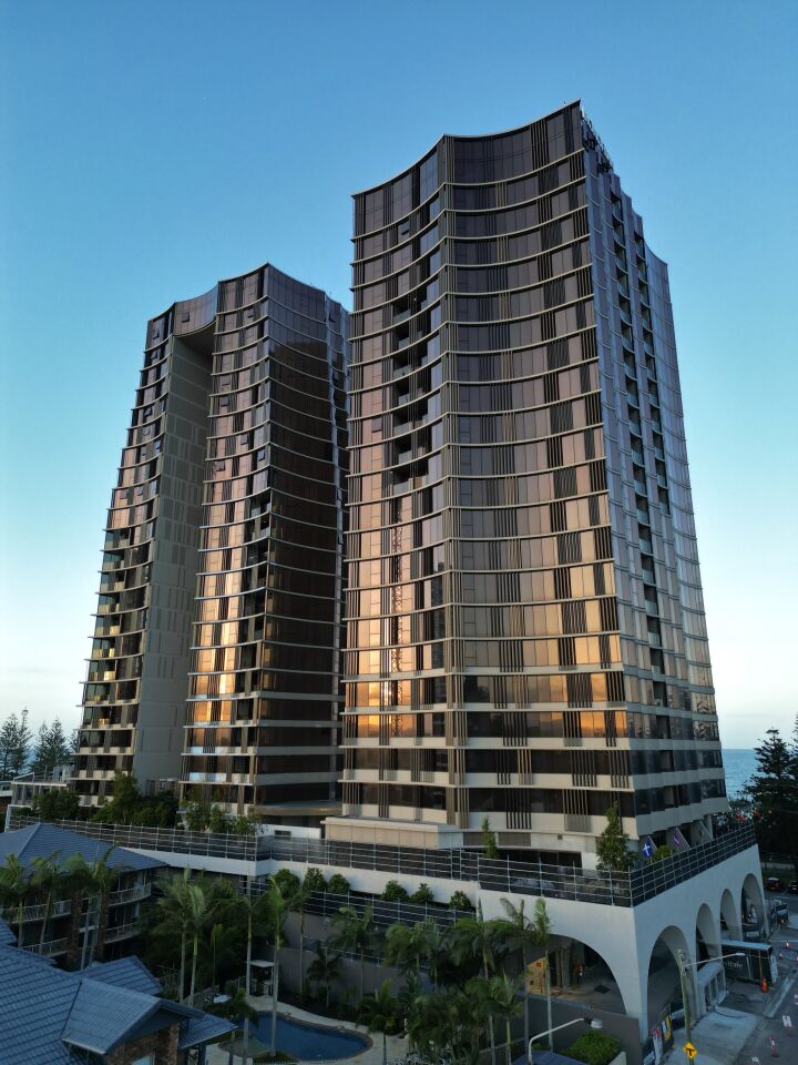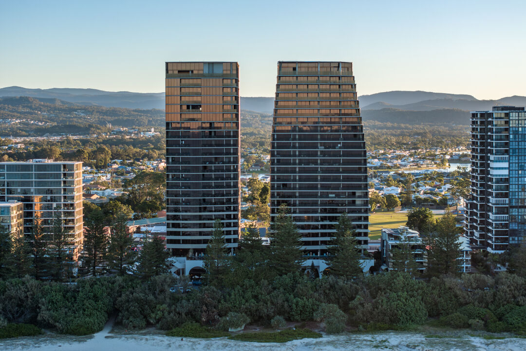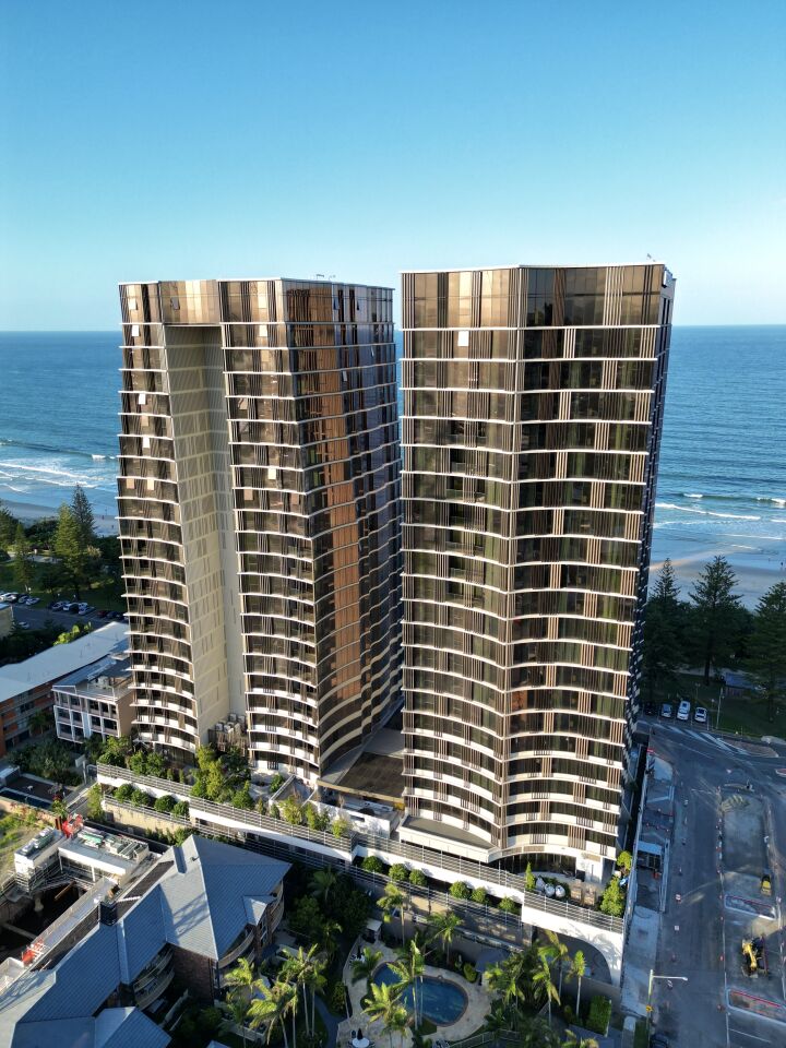The residential tower includes 84 homes. These range from two, three and four bedroom residences including skyhomes and a Penthouse. The hotel tower includes 208 guest rooms consisting of one, two and three bedroom guestrooms which include two beach houses and a Presential suite. Both towers sit on absolute beachfront land at Burleigh Heads.
