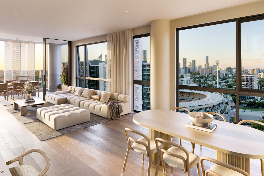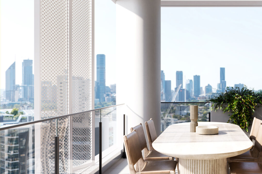 Inspired by the Spanish orchard city of Murcia, with its relaxed Mediterranean-inspired style, lush landscaping and central position, the project brings together residential apartments, retail spaces and lifestyle amenities in one of Brisbane’s most connected urban precincts.