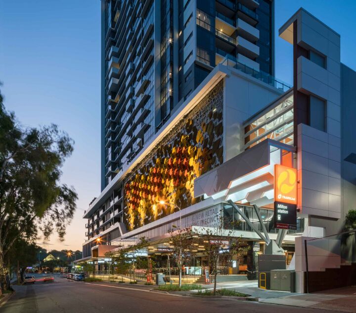 Situated above Milton train station in Brisbane’s inner West, The Milton – Brisbane’s first transit orientated development – is well suited to the business traveller and discerning executive alike. Hutchies performed the design and construction for The Milton, a 31 storey residential tower, including 1,254m² of ground floor retail tenancies, 1,188m² of commercial tenancies and 301 one, two, three and four bedroom apartments.