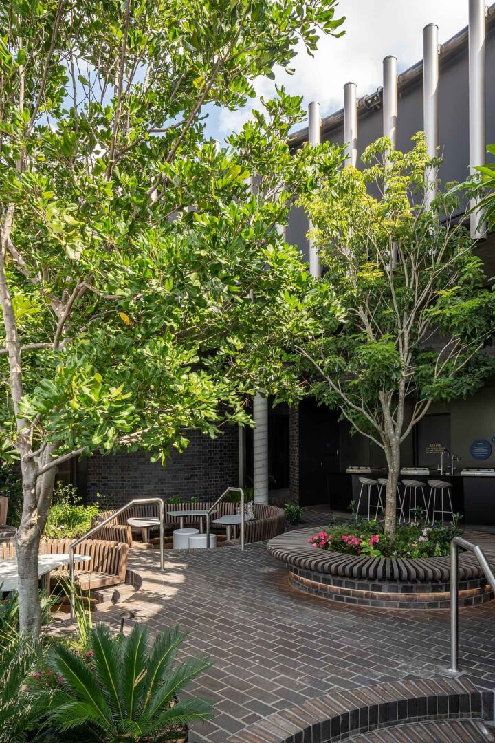 Wrapping around the lower levels of the curving façade is an extensive green wall, which on completion is expected to be Australia’s largest. Smaller green walls and water features are also incorporated into the main lobby and recreation levels to provide a cooling effect for residents.