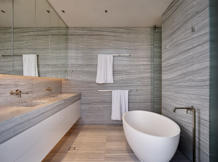 The project includes a range of energy-efficient features such as thermally efficient ceramic frit glass, which reduces heat load, along with architecture that embraces river breezes for natural ventilation and cooling. Despite the challenges, the team worked collaboratively and tirelessly to deliver the highest quality and craftsmanship for these discerning residences. It stands as an important addition to Kangaroo Point’s urban fabric.